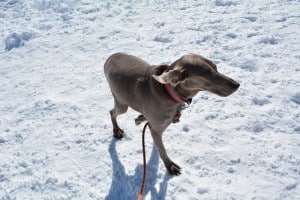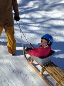 Ker smo predvsem odšli na počitnice na sneg, ravno zaradi naše 2,5 letne punčke, smo k temu primerno poskrbeli, da bo njen dan usklajen z njenimi potrebami. Ni nam ravno uspelo izpolniti vseh njenih pričakovanj, saj če bi bilo po njeno, bi bila čokolada namesto vsakega obroka, igranje na igralih bi zamenjalo popoldanski spanec in vodo bi zamenjala vroča čokolada. Zato smo se pogajali sto na uro. Če otroka pelješ na najvišjo točko na sankališču in mu rečeš, da se bomo zdej spuščali s sanmi (in je to zanj prvič), ga preplavita tako adrenalin kot strah. Po prvem spustu, ki je potekal v znaku joka in veselja, je bila naša mulčica ob pristanku na cilju takoj pripravljena za novi spust. Zelo pomembna stvar v taki »športni panogi« z otrokom je, da ga znaš držati na adrenalinskem nivoju. Zato smo mi tekmovali (seveda je Suriyah zmagovala), se vmes ustavljali, se metali v zasnežene ob-poti, delali angelčke in se kotalili v dolino po globokem snegu. Naša psička ni bila izjema.