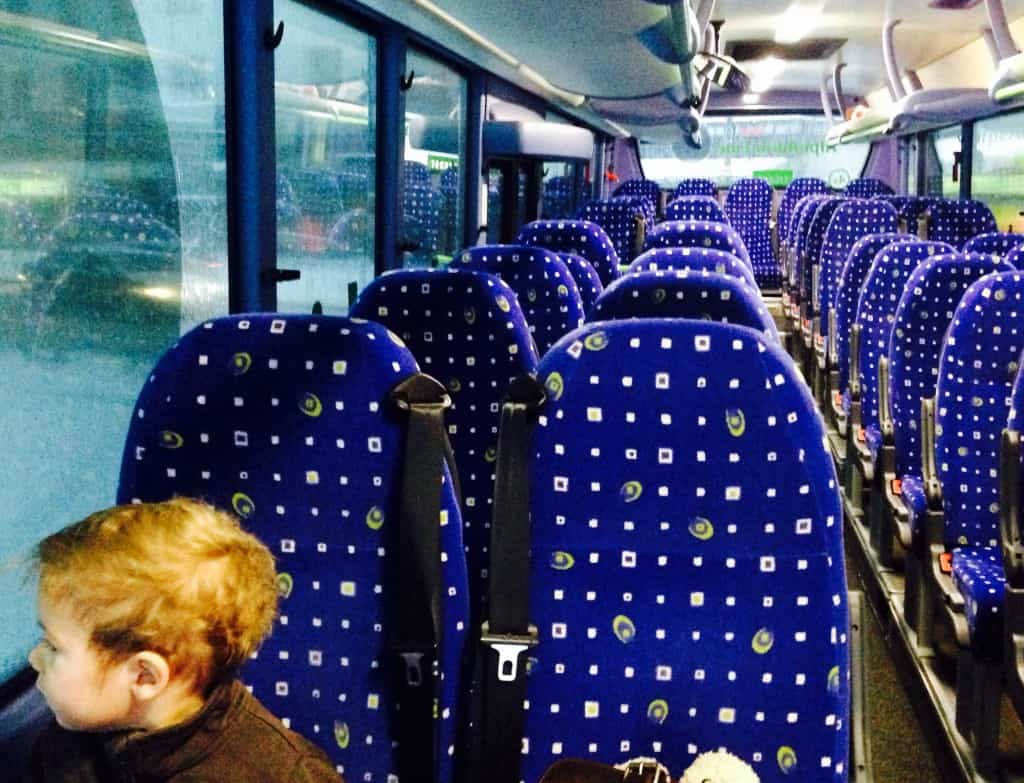 6. Na avtobusu ne potrebuješ otroškega sedeža, saj imajo novejši avtobusi že varnostne pasove, ki se zapnejo na isti princip kot pri avionih. Mlajši otroci pa sedijo pri vas v naročju. Vsekakor pa priporočam, da to še enkrat preverite pri nakupu kart.