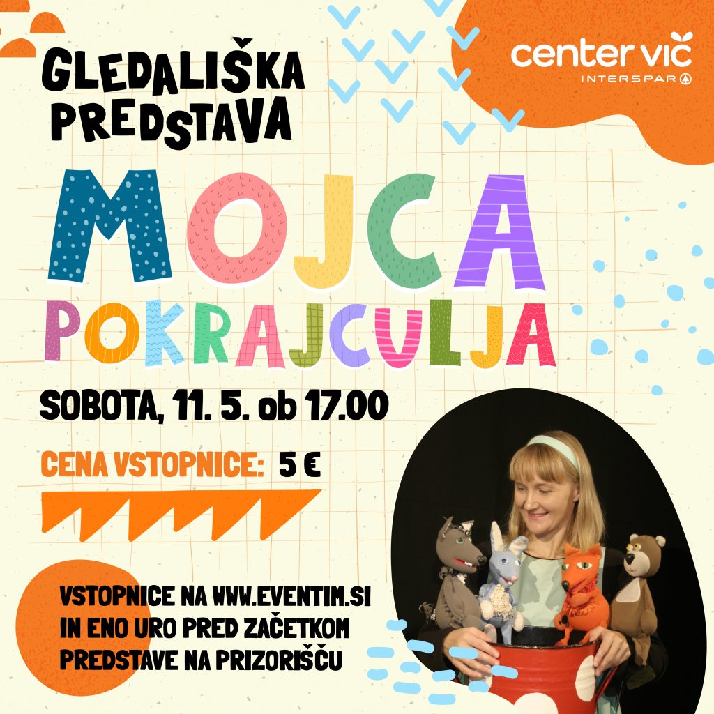 Ljubitelji pravljičnega sveta vabljeni v nov prireditveni prostor Centra Vič, kjer bo na odru zaživela zgodba Mojca Pokrajculja. Le kdo ne pozna priljubljene ljudske koroške pravljice o deklici Mojci, ki se nenadoma znajde obkrožena z novimi prijatelji? Lisica, volk, medved in zajec ji v znak zahvale vsak s svojimi spretnostmi priskočijo na pomoč pri delu […]
