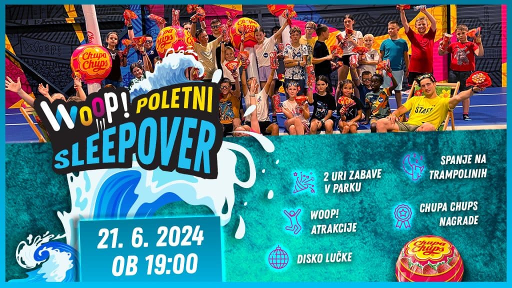 Šolsko leto se zaključuje, počitnice so pred vrati in čas je, da se otroci podružijo na nepozabni zabavi. 21. 6. 2024 ob 19 uri se bo v Mariboru in Ljubljani zgodil tradicionalni WOOP! POLETNI SLEEPOVER. Kje bo sleepover potekal? V LJUBLJANI (WOOP! Fun park) in MARIBORU (WOOP! Maribor). Za koga je primeren? Za otroke od […]