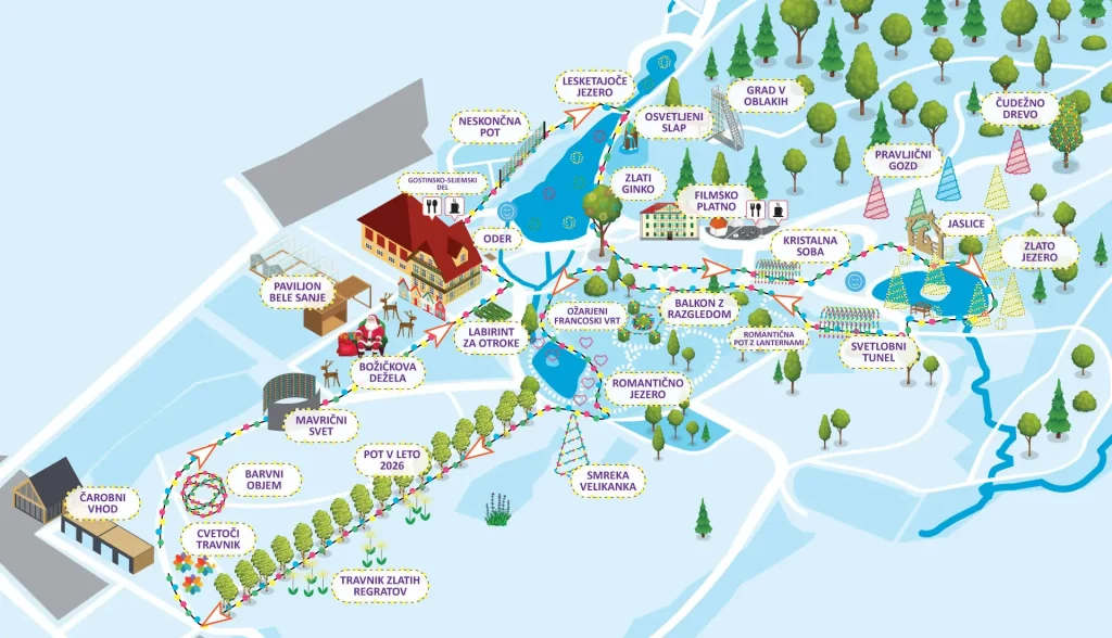 Kdaj: večerni sprehod med lučkami je mogoč vsak dan, tudi med vikendi in prazniki, do 11. januarja 2026, od 15. do 21. ure. Park je razsvetljen z lučkami od 16.00 dalje.