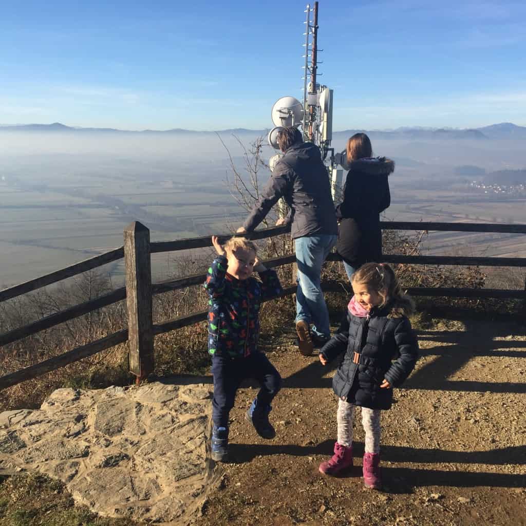 Ob našem prihodu smo opazili, da je mlada družina pustila voziček pod hribom in nekaj minutno pot do vrha hriba nadaljevala z otrokom v naročju.